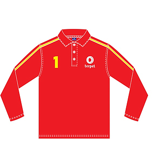 POLO ROJO TERPEL NO.1 S imagen nueva, franja amarilla en mandas logo terpel tet. Izq. N0. I tet. Der. CABALLERO